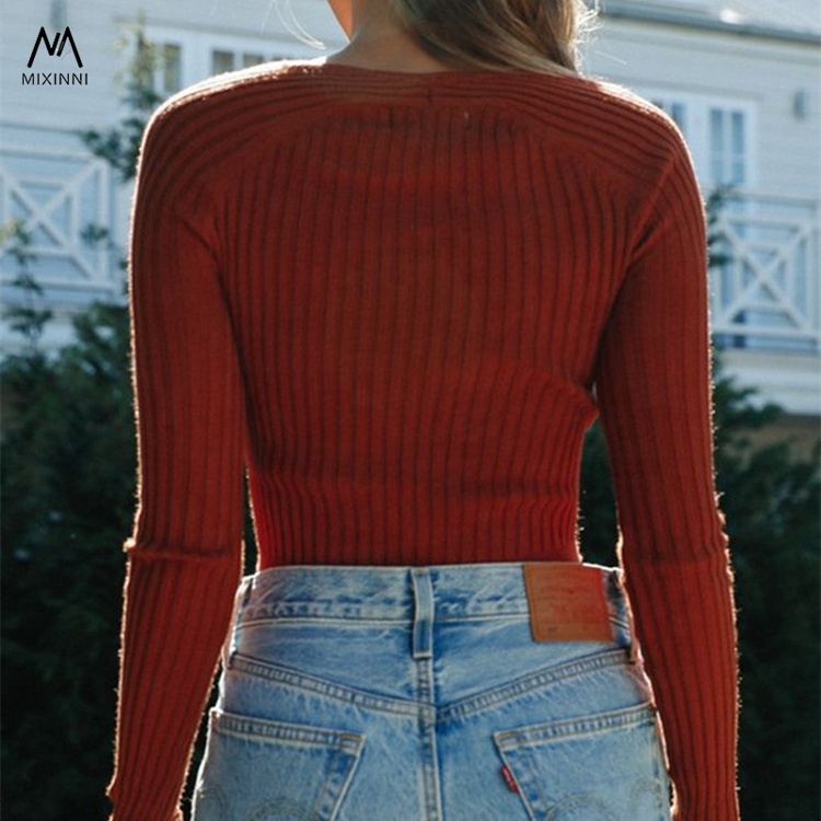 MXN 1171 Best-selling sexy women's tops,V-neck sweater long-sleeved ladies tops,autumn and winter pullover bottoming shirt